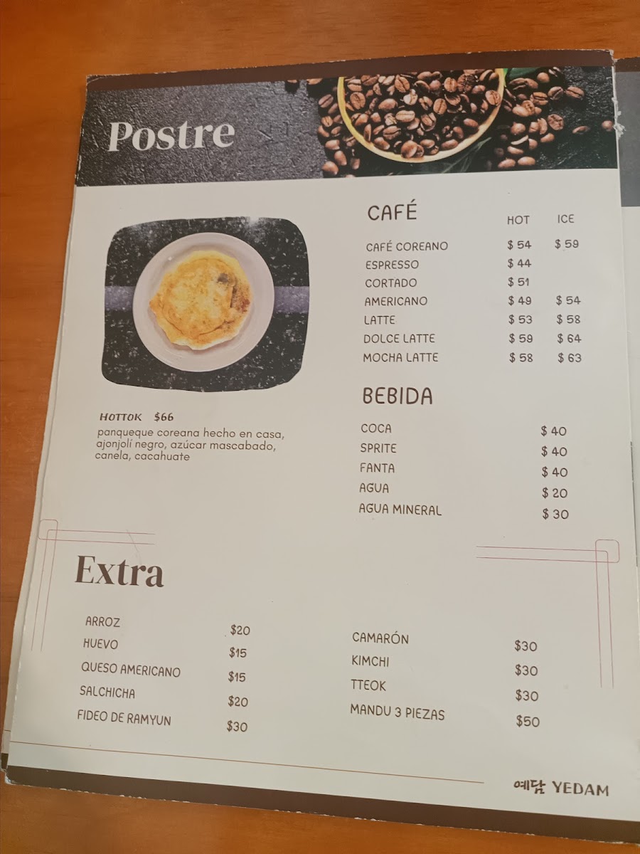 예담 Yedam (comida coreana) Restaurante & Café Menu